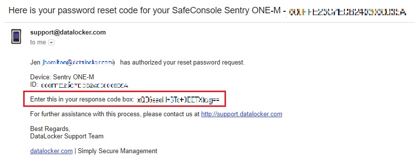 - The User contacts their SafeConsole Administrator to retrieve the Response/Recovery Code.